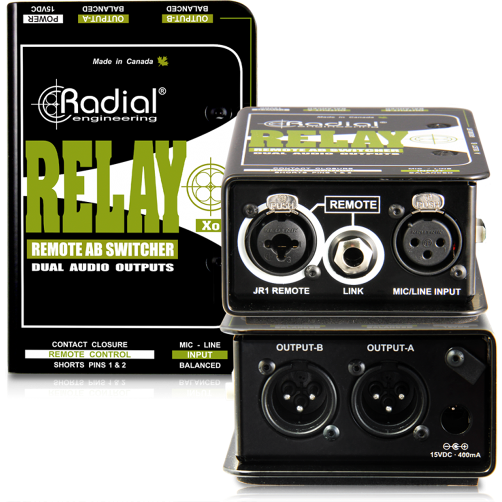 "The Radial Relay Xo Remote AB Switcher can provide talk-back functionality or expanded mixing options. This controllable signal router gives both the musician and the sound tech options they don't normally have available."