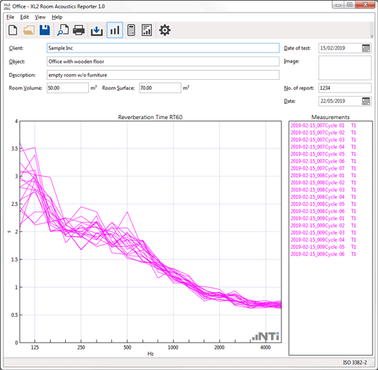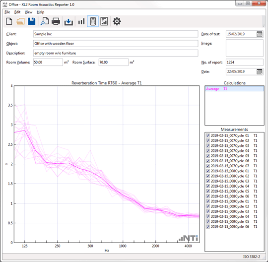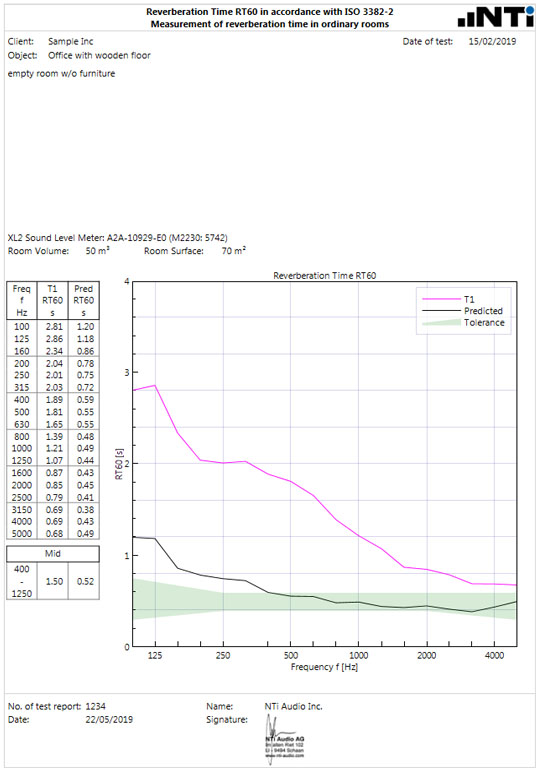 The Room Acoustics Reporter software is the ideal tool for data analysis and reporting of the following measurements: