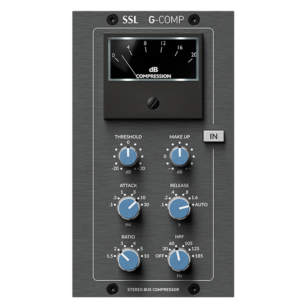 The legendary sound of the SSL Stereo Bus Compressor has been glueing mixes together for 40+ years. Often imitated but never equaled, the centre section compressor from the 1980's Solid State Logic G-Series analogue console is an audio production legend. It is a simple unit with a simple purpose; it makes complete mixes sound bigger, with more power, punch and drive.