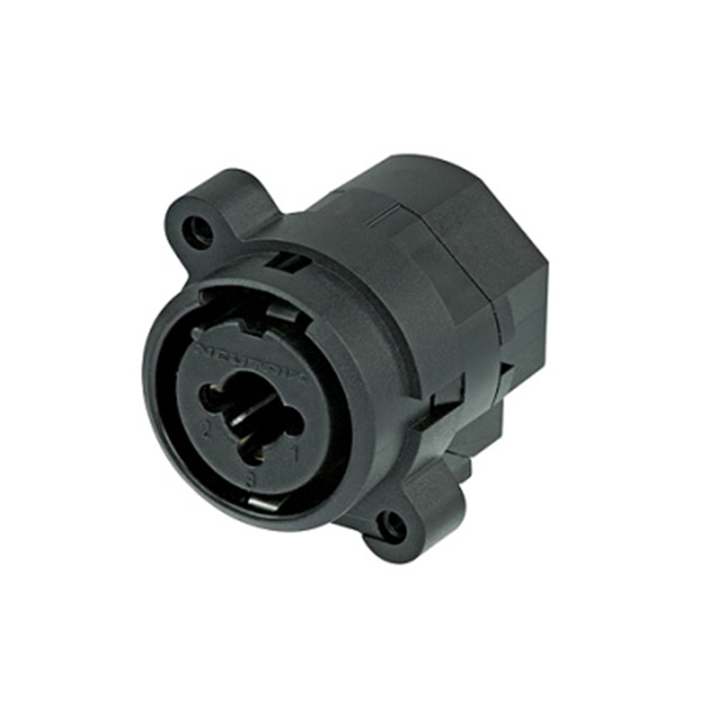 XLR / jack hybrid chassis connector combining 3 pole XLR receptacle and 1/4" jack.