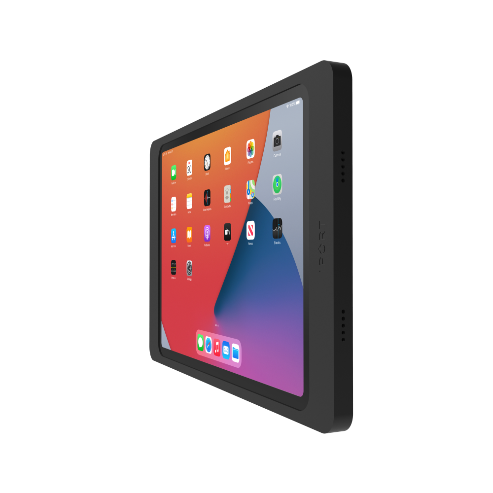 IPORT Surface Mount is the most elegant way to permanently mount iPad on a wall or solid surface. iPad is contained in a minimalist aluminum bezel that doubles as the central mounting component. iPad stays secure with built-in locking components in the bezel and includes an IPORT PoE+ Adapter and USB-C cable to power iPad. Surface Mount integrates iPad onto any solid surface or wall while maintaining complete access to the iPad power button, microphones and speakers while in the bezel. Available in black and white finishes, Surface Mount is the best iPad wall mount to install iPad on any surface while ensuring it blends into your space.