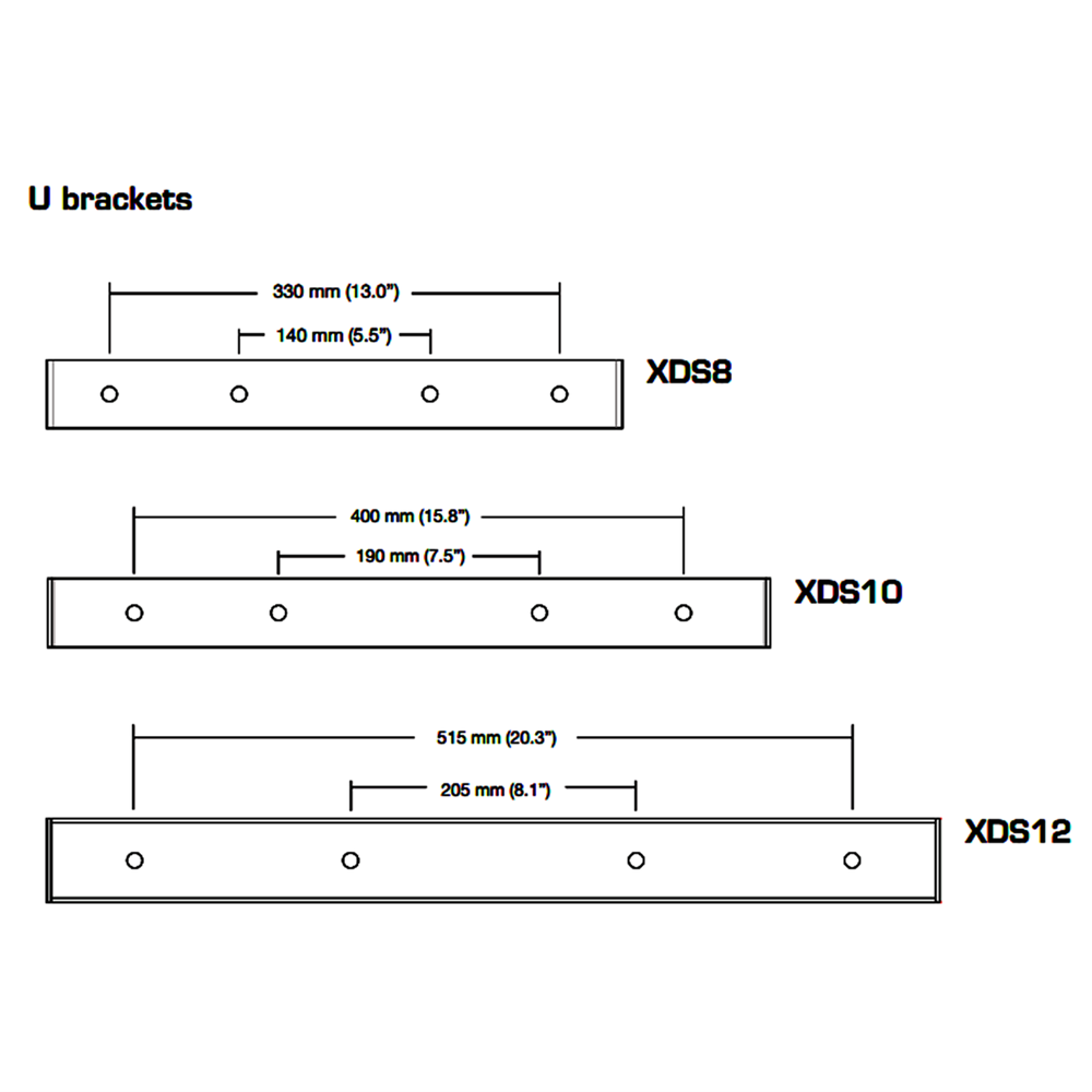 A number of wall mount options are available for the XDS speaker range. The wall mount U brackets permit speaker mounting in either horizontalor vertical orientation. The brackets are supplied with enclosure mountingplates to replace the standard pole mount and blank plate fitted to the speakers as standard.