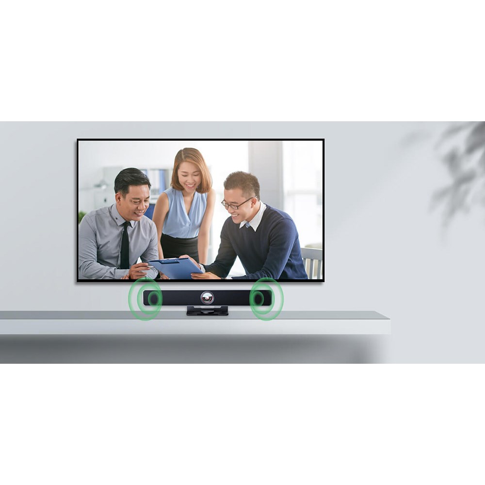 EXCELLENT AUDIO PICKUP Built with a beamforming four-microphone array, HALO VX10 v2 video bar precisely picks up and reproduces resonant voices from anywhere in the room. It can pick up clear and natural voice within a distance of 16ft/5m, ideal for both home office and meeting room of 4 to 7 people.