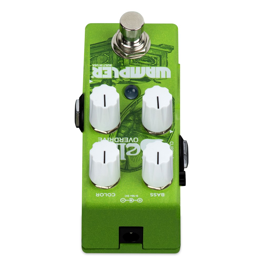 The Color control is more than just a standard tone control and it’s pretty unique to this circuit. Dialling it right or left will either boost or cut the high and low end a little, but the midrange frequencies are left well alone. Combine this with the Bass control and you have a very versatile tone shaping palette with Wampler’s legendary ease of use. Brian has also added a push switch on the side which will control the amount of compression and clipping structure in the circuit for some extra punch.