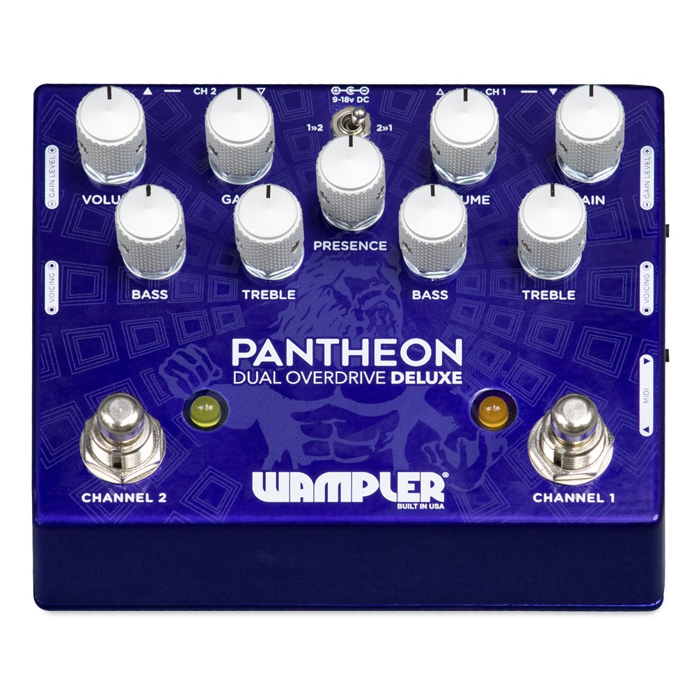 Enter the new Pantheon Deluxe – a dual overdrive pedal, that takes this evolution several steps further by offering a flexible design with two completely independent Pantheon circuits, one voiced as a classic blues breaker and one with a more modern boutique sound. This palace of tone delivers a staggering 200 combinations of gain settings, featuring dual Inputs and Outputs, and for the first time ever, Wampler have added MIDI channel switching to one of their gain pedals.