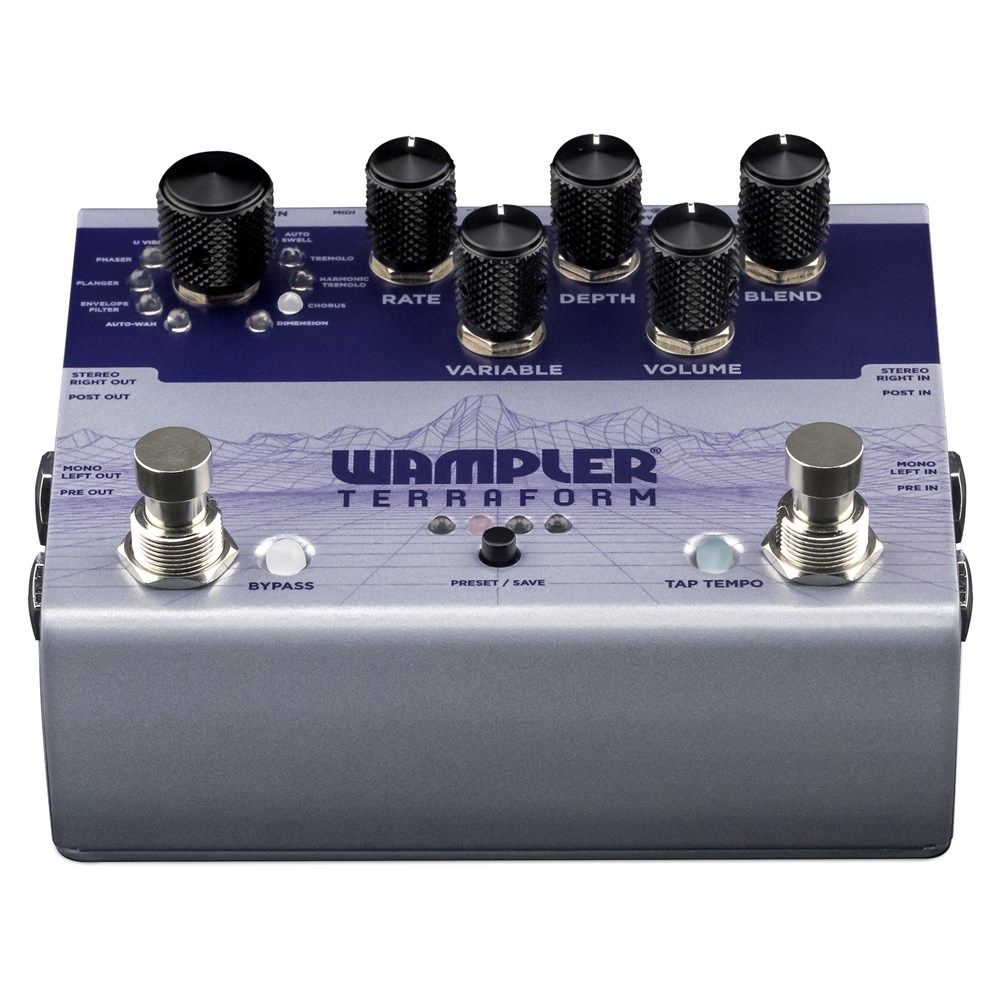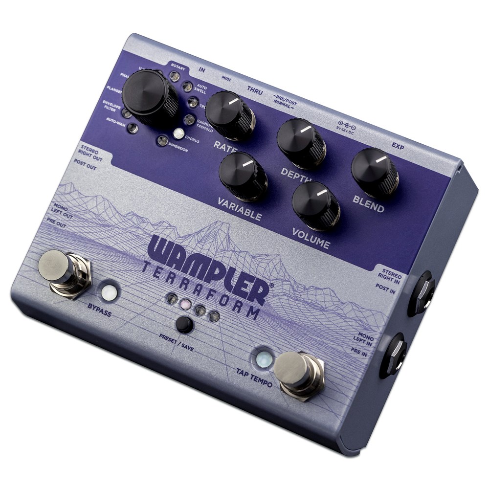Welcome to the Wampler Terraform! The Terraform reshapes the landscape of traditional modulation. This pedalboard-friendly stompbox has multiple routing options, true stereo, presets, MIDI control and 11 custom-designed modulation effects imagined and created in-house by the team at Wampler! You can have everything you ever dreamed of without the frustration of surfing endless submenus on a tiny screen.
