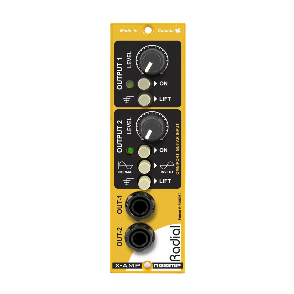 The Radial X-Amp is a 500 series module that lets you take a pre-recorded guitar track and send it back to amplifiers and effects so that you can tailor the sound to suit. The advantages of Reamping® are many: when recording, the guitarist need only concentrate on the performance. Working out specific sounds and optimal mic placement can be done later. This eliminates hours of tiresome repetition while allowing the producer to adjust the character of the track as the production evolves.
