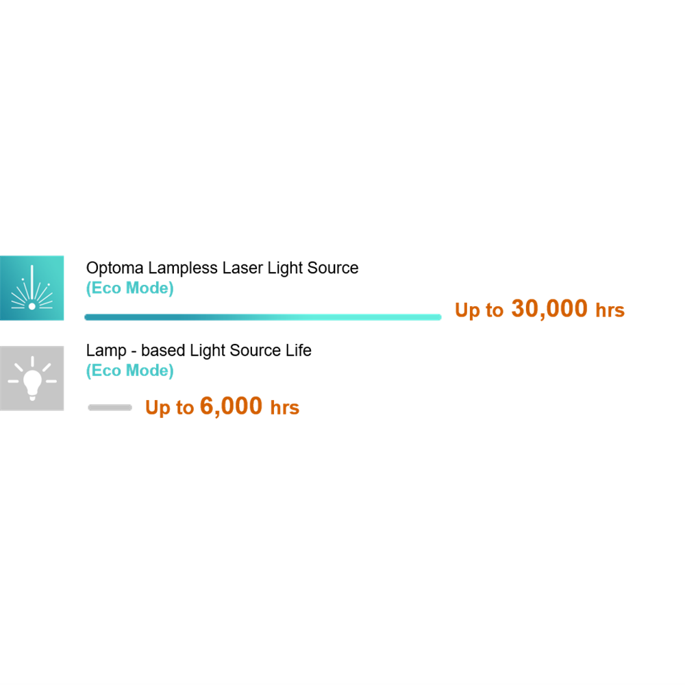 ZH507 is designed with Optoma’s Airtight Optical Engine with IP6X certification.The airtight enclosure resists dust particles and ensures a long lasting, reliable and maintenance free experience, and ultimate brightness consistency and reliability. The Mercury free laser light source is rated for up to 30,000 hours enabling a low total cost of ownership.