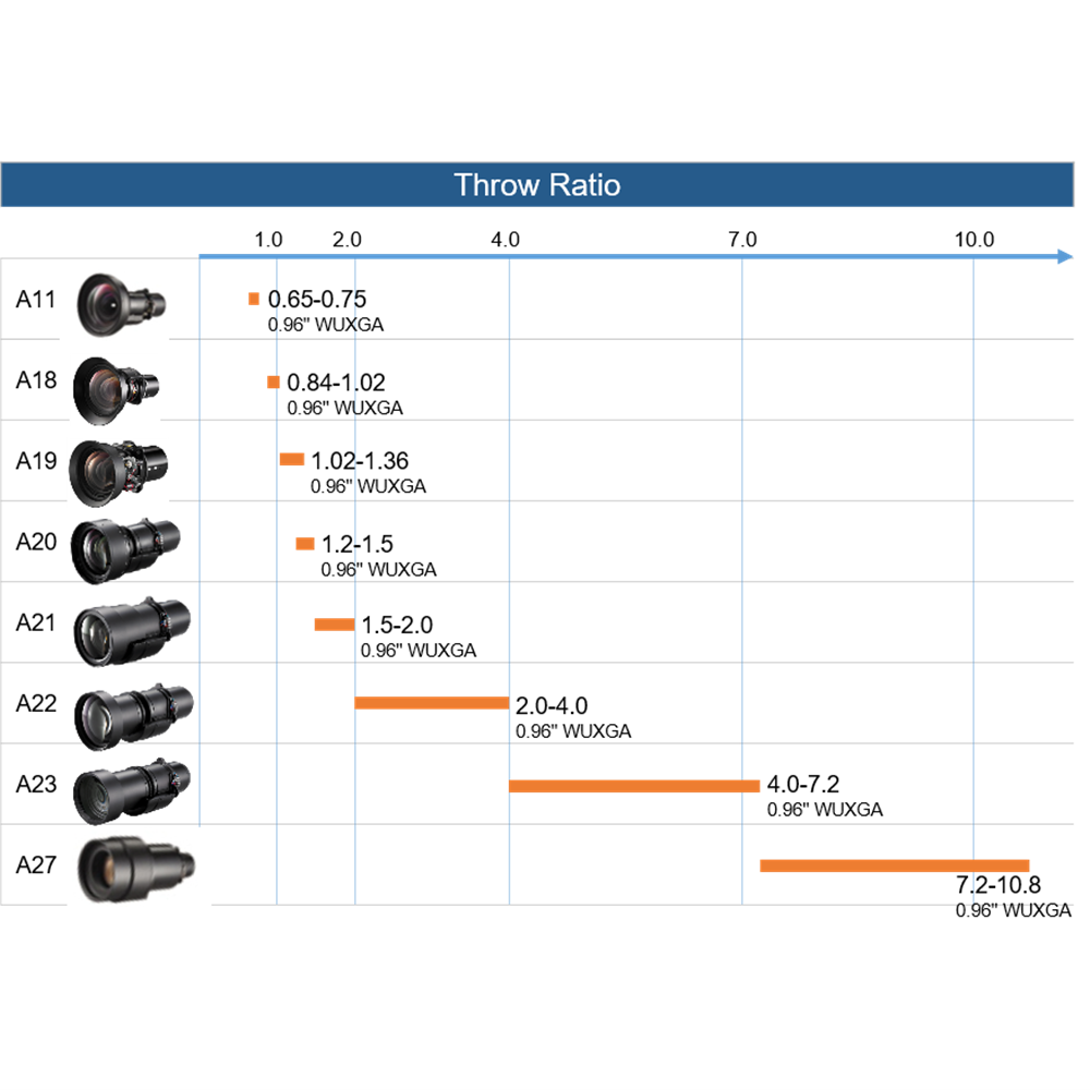 Designed to suit challenging installation environments, the ZU2200 supports 360-degree & portrait projection, 24/7 operation capabilities and 8 optional lenses ranging from TR0.65~10.8.